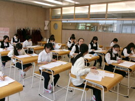 答案用紙を返却すると、生徒たちは点数を見て一喜一憂していました。
