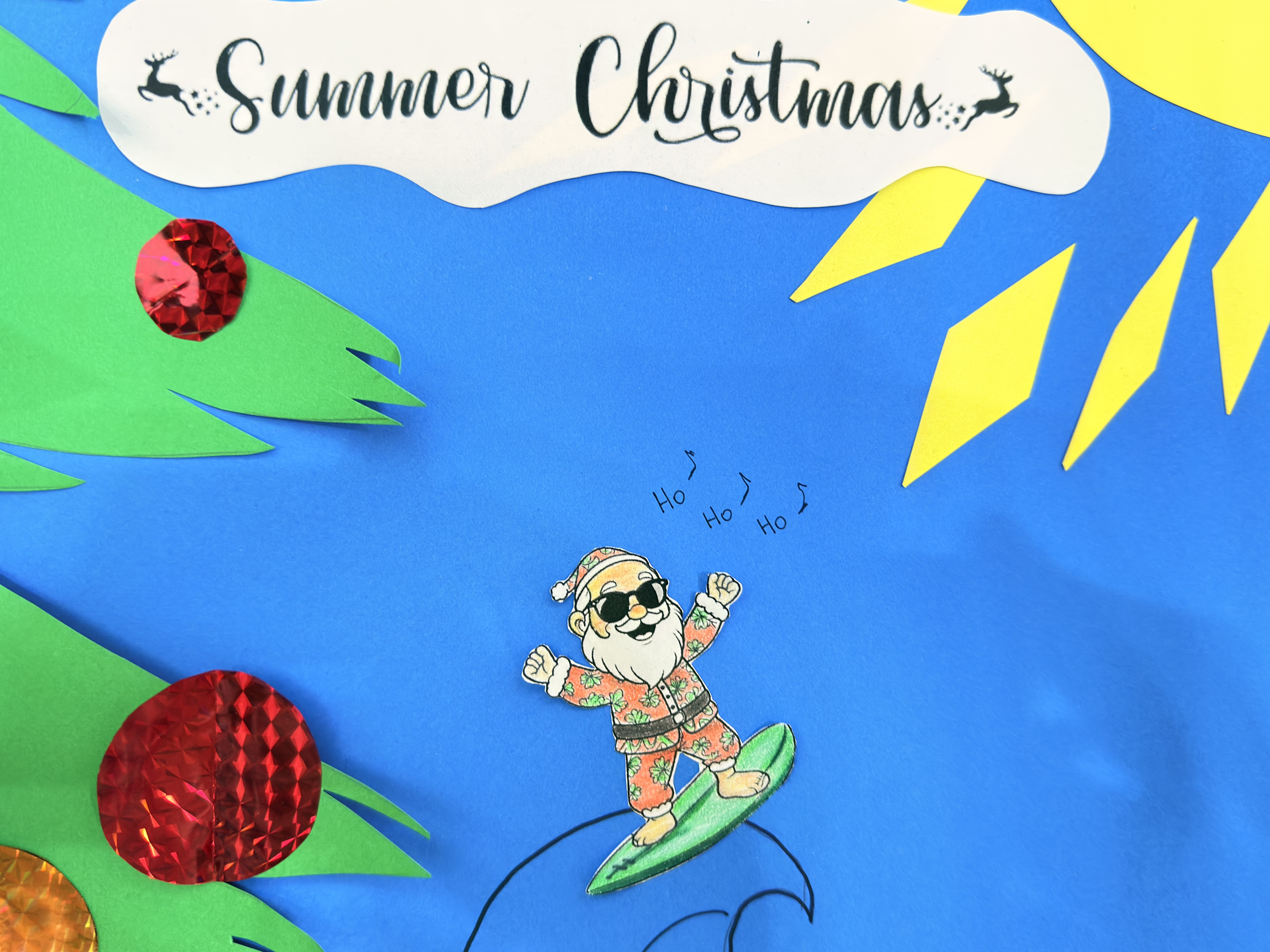 オーストラリア出身のPhillp(フィリップ)先生が、日本のクリスマスとオーストラリアのクリスマスをボードに表現してくださいました。