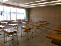 教員が一丸となり、教室整備の一環で机とイスのセッティングを行いました。