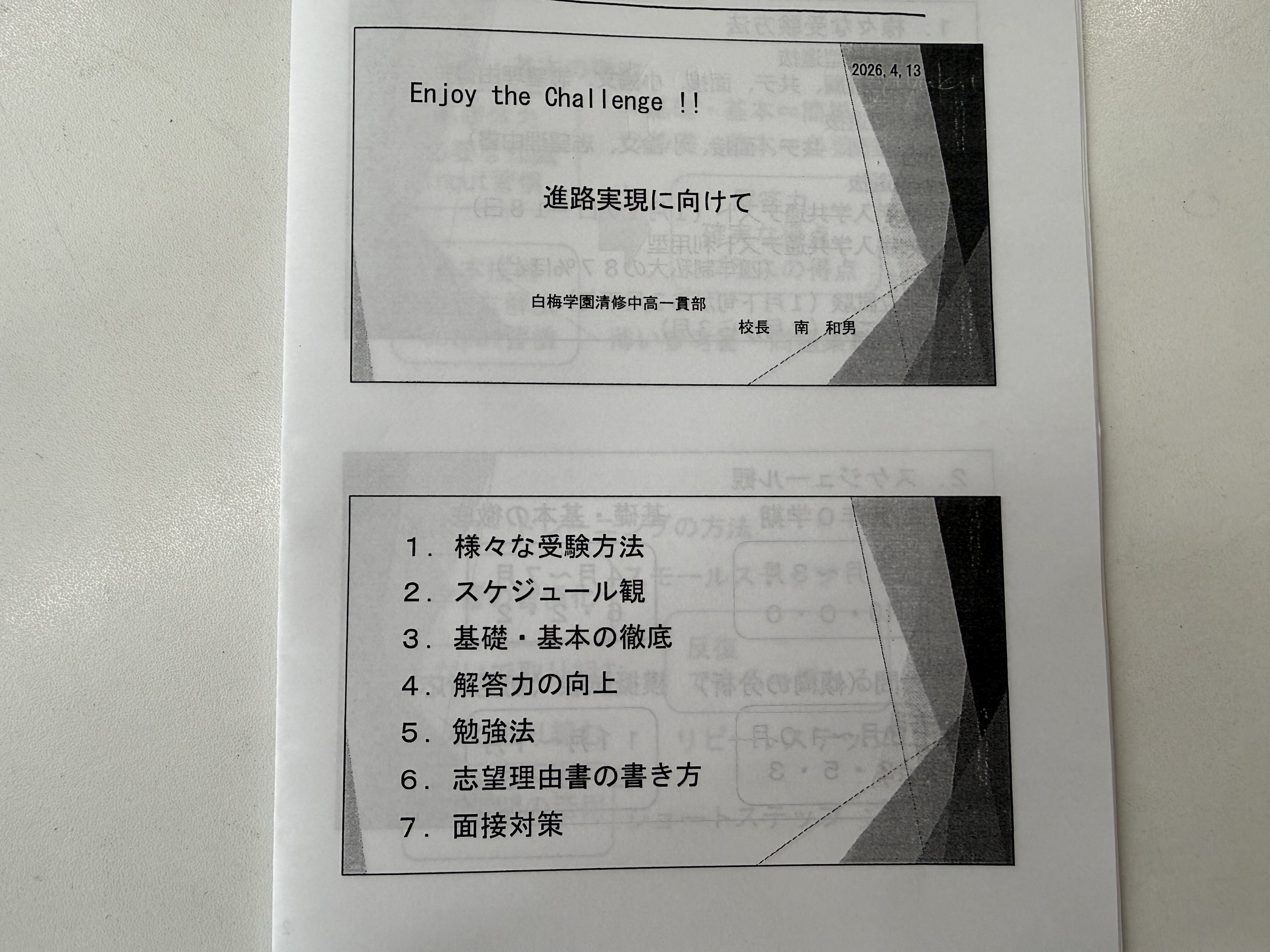 5年生(高校2年生)に向けて、校長先生が進路講話をしてくださいました。